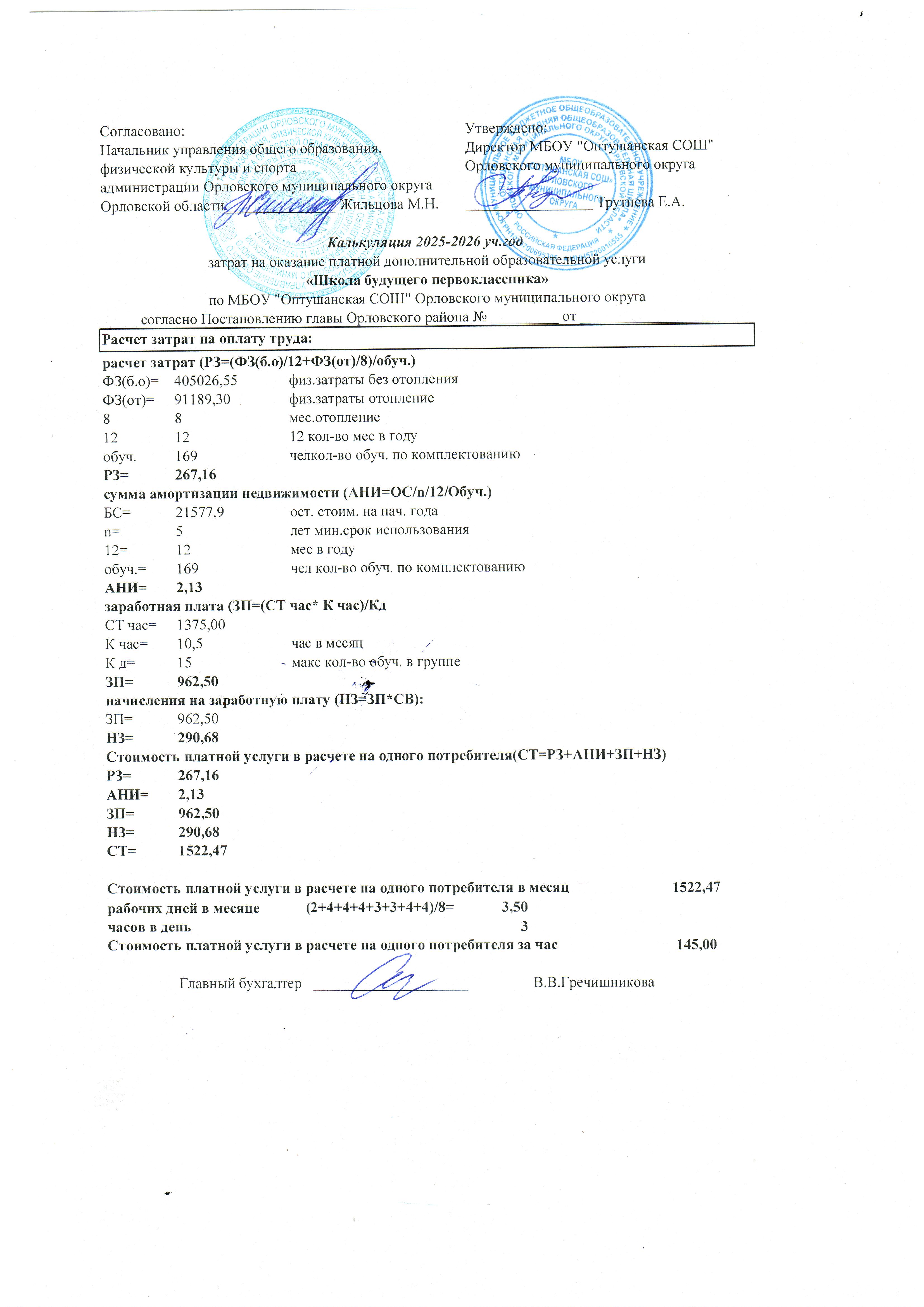 Затраты на оказание платной образовательной услуги